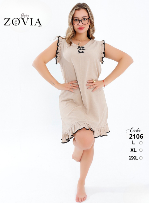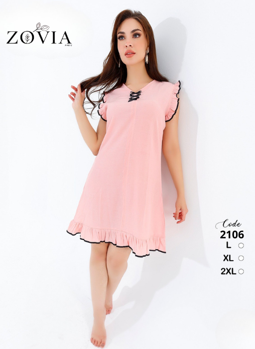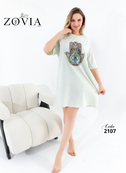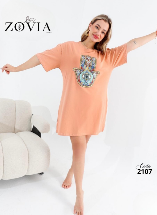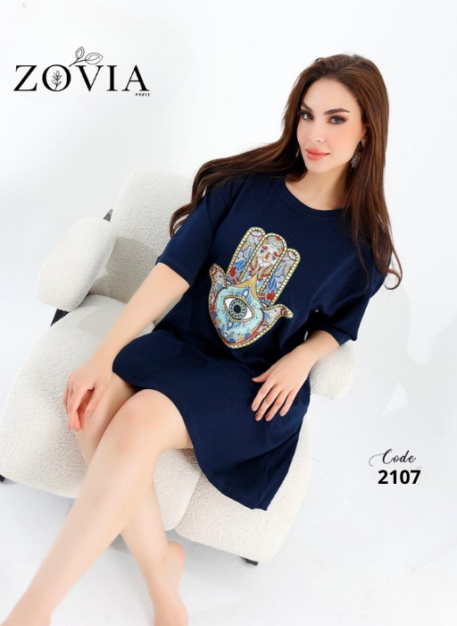 استمتعي بإطلالة رائعة مع ZOVIA في ترنج البيت كود 2144. مصنوع من 100% قطن ليكرا، يقدم لكِ راحة استثنائية ومظهر عصري. تصميم مميز بنقوش رائعة وجيب على الصدر، يجمع بين الأناقة والبساطة ليتناسب مع ذوقك الرفيع.